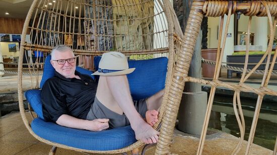 Zurück im Hotel ruht sich Thomas aus und ich gehe zum Pool und lese.