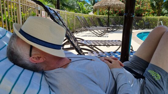 Ich verbringe den Tag allein am Pool, während Thomas sich ausruht.