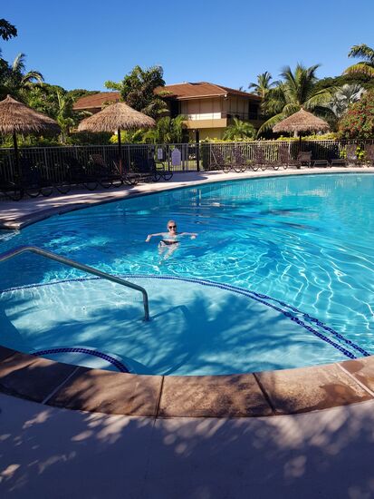 Abends geht es ihm wieder besser, Wir besorgen uns unser Abendessen im Safeway und genießen ein letztes Mal das Meer und den Pool. Wir sind traurig. Morgen müssen wir uns von den Hawaii-Inseln verabschieden....!