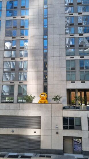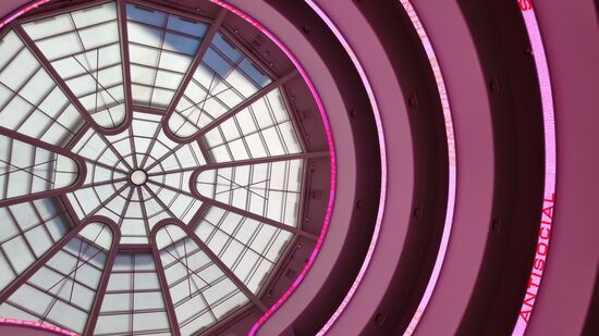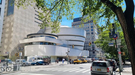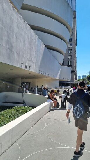 Wir verlassen den Park mit schmerzenden Füßen und Gelenken auf Höhe des Guggenheim-Museums, in dem wir natürlich als anerkannte Kulturbanausen nicht (!) in die Ausstellung gehen, sondern als Cineasten in der Eingangshalle den Blick nach oben richten.