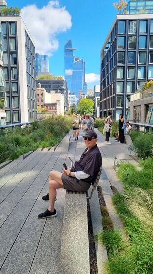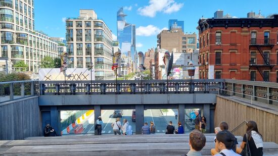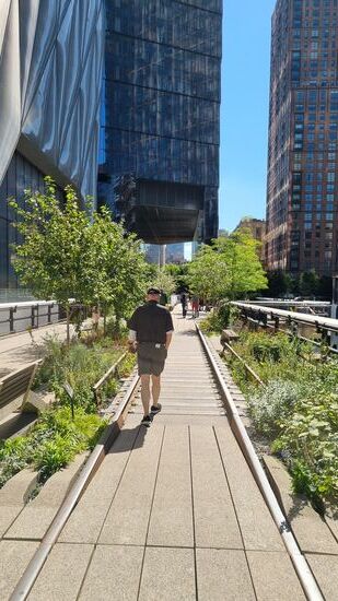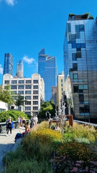 Dann laufen wir den Highline Park entlang, eine ehemalige Bahntrasse, die nun zum Stadtpark in luftiger Höhe umfunktioniert wurde. Der Traum eines jeden Städteplaners!