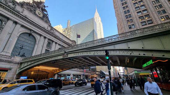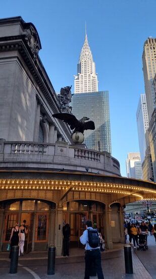 Nachdem wir zunächst natürlich den Metro-Eingang in die falsche Richtung erwischen und wir 18 Minuten warten müssen, bevor unser Ticket wieder für die Gegenrichtung freigeschaltet wird, steigen wir in der Central Station wieder aus, suchen uns dort zur Oyster Bar durch und testen das kleine akustische Wunder dort: Man stellt sich in die diagonal zueinander liegenden Ecken des Gewölbes und kann sein Gegenüber glasklar reden hören. Trotz der Entfernung!