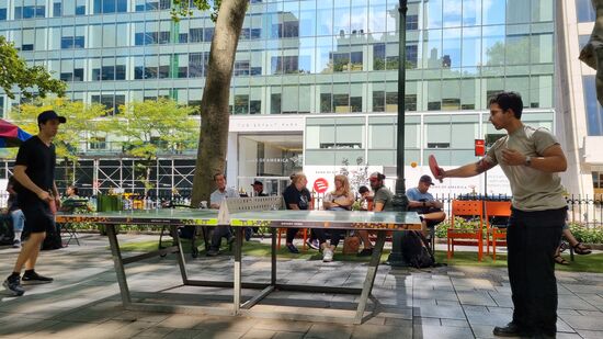 Danach schlendern wir durch die Straßen der Stadt und landen schließlich im Bryant Park, wo wir den Tischtennisspielern zuschauen.