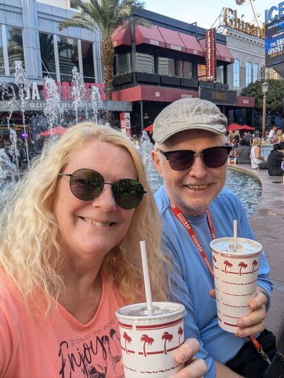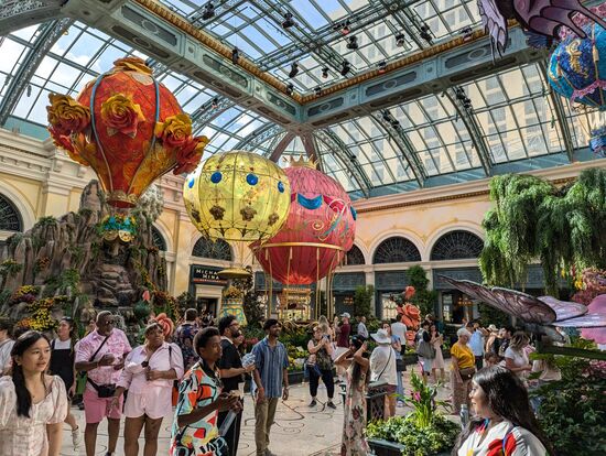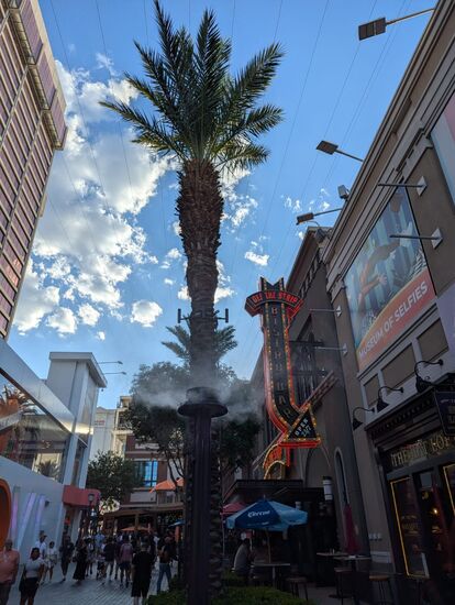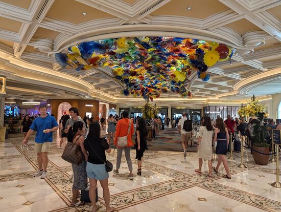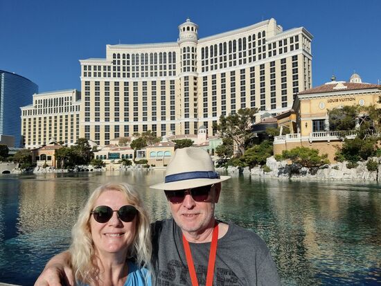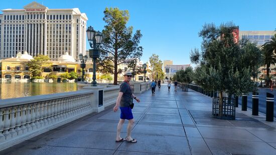 Die Tram im MGM ist außer Betrieb und so laufen wir weiter durch die Hotels und am Strip entlang. Das zieht sich. Nachdem im ich Walgreen Blasenpflaster, einen Ventilator gegen die Hitze und eine Halterung für meine Sonnenbrille gekauft habe, geht es am Bellagion vorbei zum Venetian.