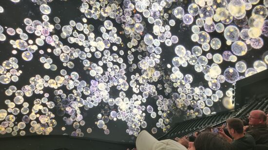 Das Sphere ist ein kugelförmiges Kino mit einer riesigen Projektionsfläche und einem gigantischen Sound. Die Bilder von der Erde sind gewaltig und überall um uns herum. Die Sitze wackeln vom Sound und die Ohren dröhnen. Wir fliegen durchs Weltall und über rote Felsen auf der Erde. Tiere und Kulturen ziehen an uns vorbei. Es ist einfach toll und jeden der 200$ für 2 Tickets wert!