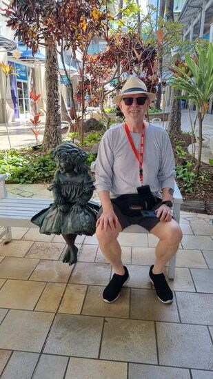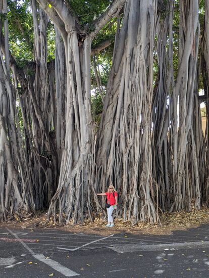 Schnell verlassen wir den Strand, machen eine Obst-Pause im International Market Place, wo wir auf einer Bank direkt unter dem Baumhaus sitzen.