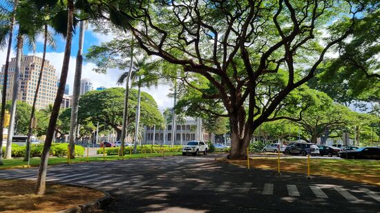 Zu Fuß geht es weiter zur Kameamea-Königsstatue am Königlichen Palast, der heute der oberste Gerichtshof ist.