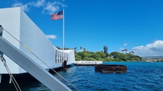 Um 10.45 Uhr nehmen wir das Boot zur Plattform, zur USS Arizona.