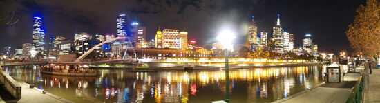 Abends als beide Seiten des Yarra River beleuchtet waren, spielte dezente Klaviermusik zu sich bewegenden Kunstfiguren in farbigen Lichtkästen. Da störte auch der gleich nebenan fahrende Zug nicht.