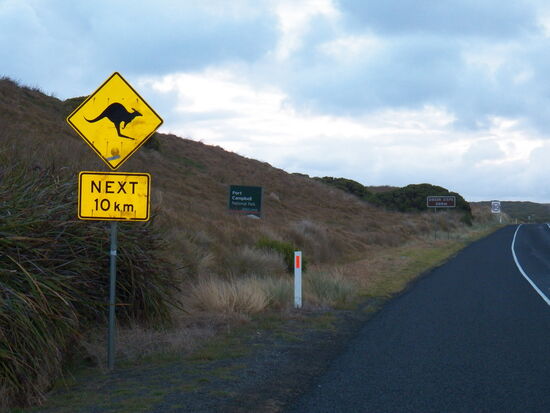 Ab fünf Uhr sah ich im Wald des Great Otway National Parks viele Kängurus die in den frühen Morgenstunden über die Straße hüpften.
