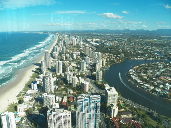 Blick vom Q1, dem höchsten Wolkenkratzer der Südhalbkugel, und auch eines der höchsten Wohngebäude der Welt