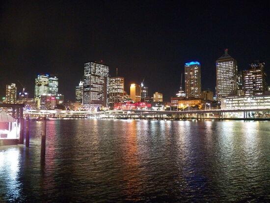 Mit dem Zug ging es nach Brisbane, der Hauptstadt von Queensland. Dort hatte ich wieder einen Mietwagen. Das Motel befand sich am Kangaroo Point, direkt am Auslauf der berühmten Storybridge, oben auf den Klippen. Diese bilden den Kangaroo Point Cliffs Park mit Kletterern an den lila beleuchteten Felsen.