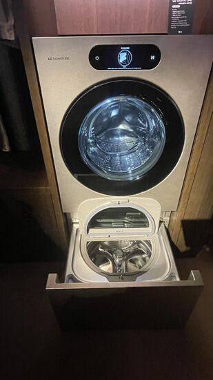 Die Zukunft: Waschmaschine&Trockner im Kleiderschrank! Das Design ist sehr schick. Unten befindet sich noch ein kleines Fach um Einzelteile zu waschen.
