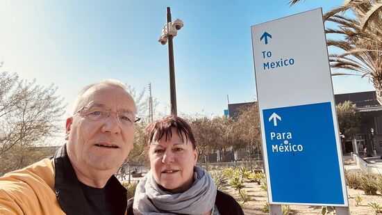 Bingo: der Bus nimmt uns nicht mit—da wir ein „Esta-Visum“ haben, müssen wir wieder zu Fuß über die Grenze.