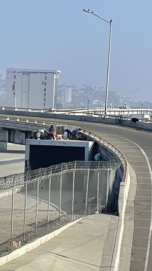 Wir entscheiden uns für den Fußweg. Es geht über Brücken und man trifft einige Leute mit interessanten Geschichten: Die junge Frau erzählt uns, dass sie ihre Schwester treffen will und im Koffer hat sie Geschenke. Sie will nicht in Mexiko bleiben, nur die Sachen abliefern