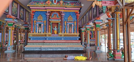 Mein Wunsch wurde natürlich für unseren kurzen Aufenthalt berücksichtigt: die Batu Caves! Ca. 12 Kilometer nördlich von KL im Stadtteil Gombak beherbergt das ca. 400 Mio. Jahre alte Höhlensystem aus Kalkstein, eine zentrale Kultstätte der malaysischen Hindus.