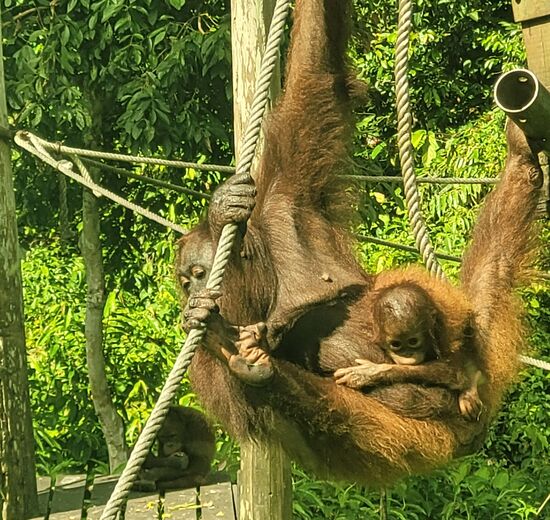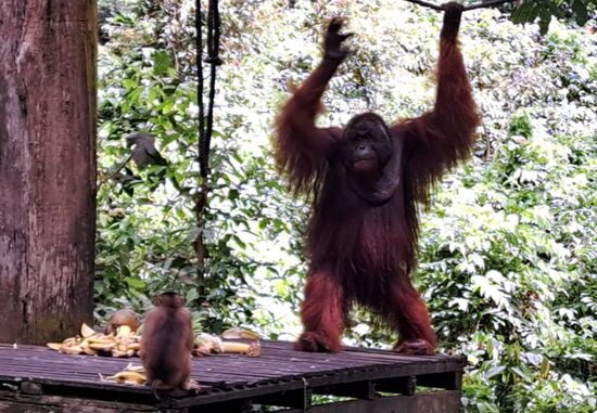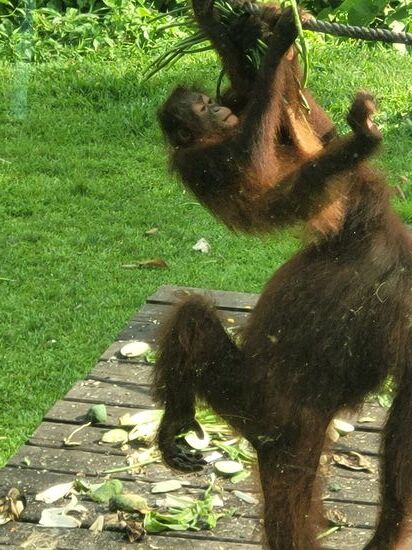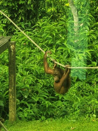 Im Sepilok Orang-Utans Rehabilitation Centre werden verwaiste, gefangen gehaltene, verletzte oder vertriebene Menschaffen auf ein Leben in Freiheit trainiert. 80% konnten erfolgreich in das angrenzende 43 qkm große, unberührte Reservat ausgewildert werden. Das Auswilderungsprogramm kann bis zu 7 Jahre in Anspruch nehmen. Neuankömmlinge kommen zuerst in Quarantäne und anschließend werden sie einem „Indoor-Norsery“ abgeschieden von Besuchern aufgepäppelt.