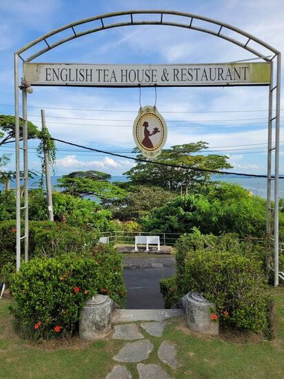 Die zwei Kellner vom "English Tea House" empfingen uns sehr freundlich und platzierten uns unter einen großen Mangobaum mit herrlichen Blick auf Sandakan hinunter. Das erst 2002 eröffnete Café & Bistro kredenzt nach englischer Manier Köstlichkeiten aus dem In- und Ausland. Der schöne Ort ist sehr beliebt und hatte für uns nur einen Fehler - Cash only !