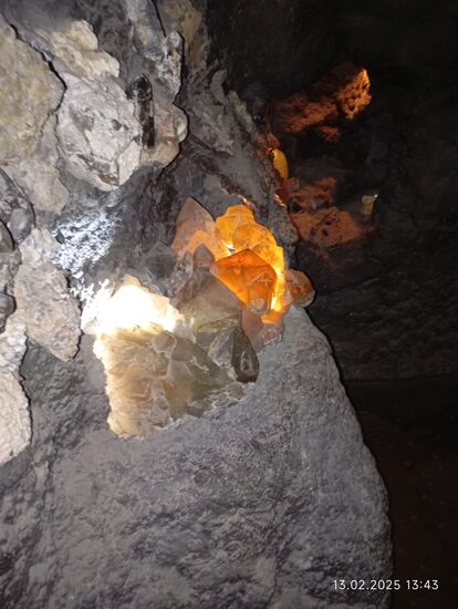 Im Jahr 1985 stieß ein Bagger in 45 m Tiefe auf einen Hohlraum im Gestein. In diesem Hohlraum hatten sich in mehr als 520 Millionen Jahren, wahrscheinlich unter starkem Druck, riesige Kristalle aus den verschiedensten Materialen gebildet. Siliziumverbindungen, Kupfer,Schwefel, sogar auch wasserlosliche Salze, die in der dortigen trockenen Atmosphäre große Kristalle bilden konnten !