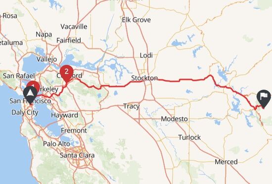 Nach furchtbarem "Stop and Go" aus San Francisco raus, ca. 60 Kilometer blanker Verkehrs Horror, war die Etappe von insgesamt 268 Kilometer nach Coulterville, genauer Greely Hill, ins Paradise Inn im Yosemite Nationalpark abwechslungsreicher als erwartet.