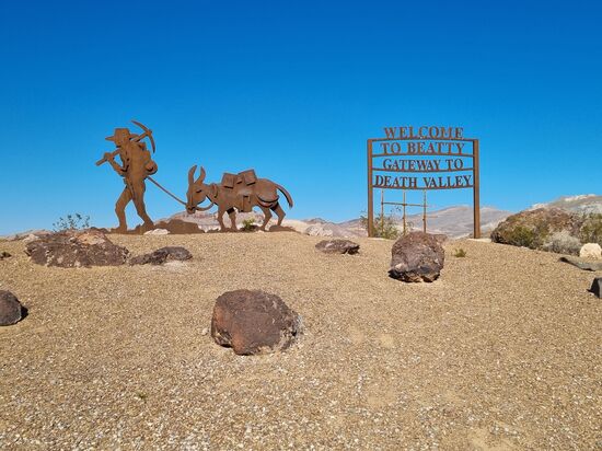 Bishop - Beatty, 248 Kilometer über den Westgard Pass nach Beatty zu Karen und Jim, bei denen wir zwei Nächte bleiben werden. Da Beatty direkt an der Zufahrt zum Death Valley liegt, hat uns Jim angeboten, gemeinsam durch den Death Valley Nationalpark zu fahren. Das ist natürlich ein Traum, mit Freunden die dort wohnen den Death Valley anzusehen bzw. zu befahren.