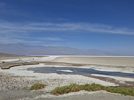 Nachdem wir von Jim und Karen gestern schon freundlichst empfangen wurden, fuhren wir heute gemeinsam mit Jims Truck eine 150 Meilen Tour durch den DEATH VALLEY Nationalpark. Früh morgens ging es los und ich glaube wir haben nahezu alles Sehenswerte gesehen. Badwater, Devils Golf Course, einige Goldminen, Dantes View, das Death Valley Inn Hotel, den Schürfpatz, an dem Borax gewonnen wurde, das "Borax Museum Furnace Creek", die ICE Creme Parlor Ranch, Zabriskie Point, Artist Palette und vieles mehr auf dem Weg. Ein wunderschöner, heißer, anstrengender Tag geht dem Ende zu. Wir haben Unmengen Wasser getrunken um dem Dehydrieren bei über 48° entgegenzuwirken. Kurz gesagt ein unglaublicher, unvergesslicher Tag mit Jim und Karen. Danke dafür.