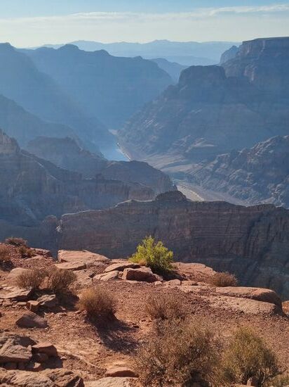 Las Vegas-Grand Canyon, Guano Point, 225 Kilometer. Am Morgen sind wir zuerst den Boulevard entlang gefahren und danach am Lake Mead vorbei und durch wunderschöne Wüstenlandschaften und Berge bis zum Hoover Staudam. Über den konnten wir nach einer Kontrolle auch drüberfahren. Sehr beeindruckend. Danach ging es durch endlose Desert Landschaften auf schnurgeraden Straßen bei heftigem Seitenwind zum Grand Canyon. Die Informationen die wir aus dem Internet hatten, dass man einfach so an den Guano Point fahren kann stimmten so NICHT. Ein paar Meilen davor ist ein Gate und da muss man bezahlen und wird mit dem Bus dahin gefahren. Das Komplettpaket kostet etwas über 100€. Skywalk, Guano Point, Zipline und ein Wanderweg. Es war beeindruckend und auf jeden Fall empfehlenswert. Ob wir es zeitlich noch schaffen mit der Zipline zu "FLIEGEN" werden wir morgen früh sehen.