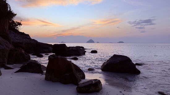 Aber wenn ich das hier auf der Karte so richtig sehe, gibt es auf Pulau Kecil nur 2 Orte: Long Beach und Fisherman Village
