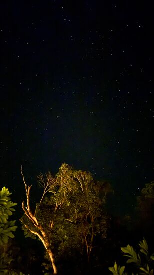 Zum Abendessen gibt es Mango und Bananen—dann geht Thomas noch auf Fototour