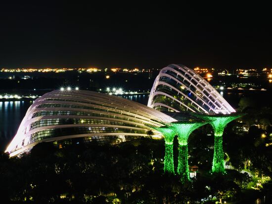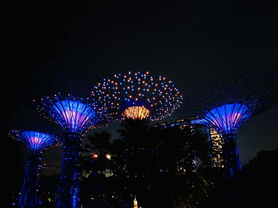 Anschließend fahren wir zu den „Gardens by the Bay“ hier findet ab 20 Uhr das spektakuläre Lichterspiel statt