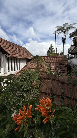 Später geht Thomas bei unserer Unterkunft noch mal auf Motivsuche—Von hier ist das der Blick auf das abendliche, beleuchtete Tanah Rata