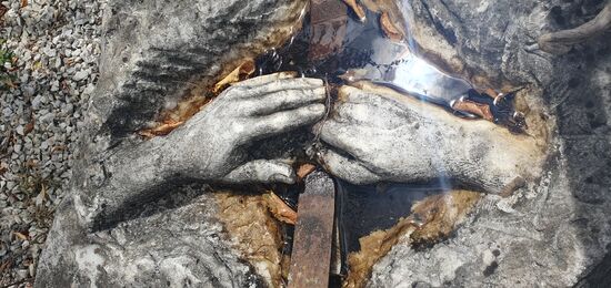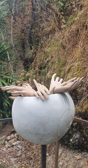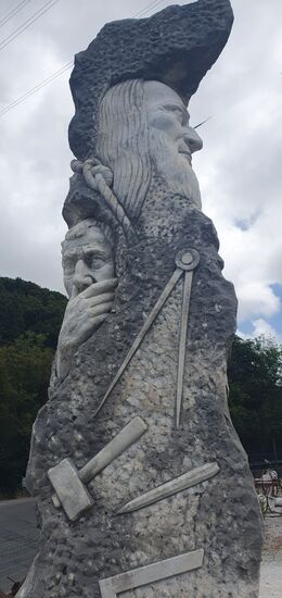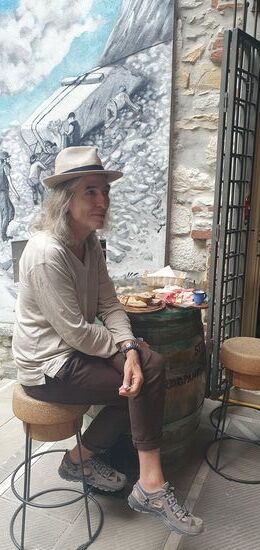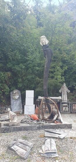 Der Künstler Michele Monfroni in Codena zwischen Carrara und Colonnata hat starke Überzeugungen und drückt sie auch krass aus.