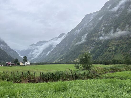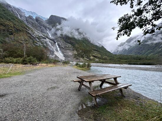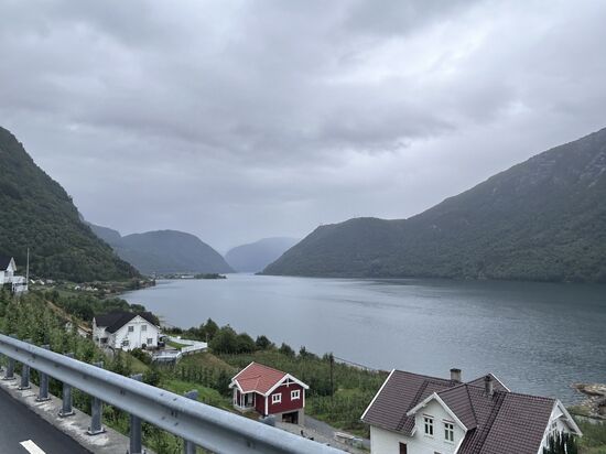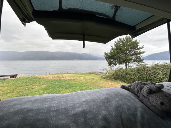 Auch heute haben wir wieder einen tollen Stellplatz auf dem Campingplatz Jølster Panorama direkt am Wasser gefunden. Auch wenn es stürmt und regnet, der Ausblick ist trotzdem sehr schön und wir versuchen es zu genießen.