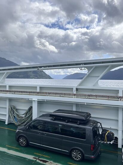 Die Fahrt mit der Fähre über die Fjorde ist immer ein tolles Erlebnis mit Blick auf die umliegenden Berge.