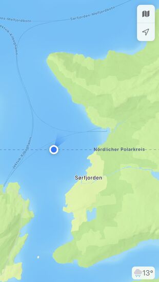 Wir überqueren auf unserer Route mit der Fähre den nördlichen Polarkreis.