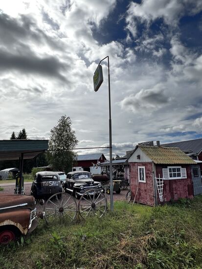 Der Weg führte uns vorbei an einer Art alten Autofriedhof – ein Grymb Place, still und skurril, als hätte die Zeit dort angehalten, um kurz durchzuatmen. Ein Ort wie aus einem alten Film, in dem jedes rostige Wrack ein Kapitel zu erzählen schien.