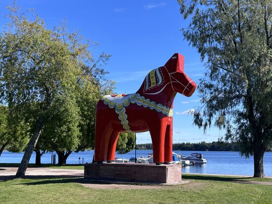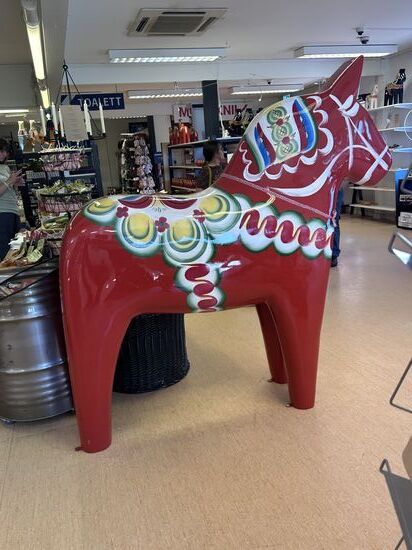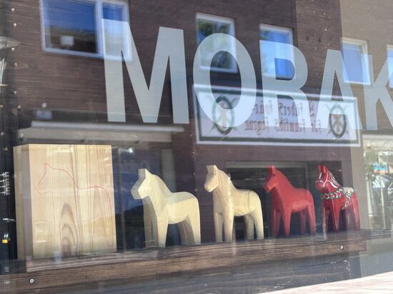 Vor drei Jahren stand Mora schon auf unserer Wunschliste – jetzt sind wir endlich da. Die kleinen roten Dalarna-Pferdchen, für die der Ort so bekannt ist, begegnen uns überall: in Schaufenstern, auf Straßenschildern und natürlich in den Werkstätten. Schön, diesen besonderen Ort nun selbst zu erleben – zwischen Tradition, Handwerkskunst und typisch schwedischer Gelassenheit.