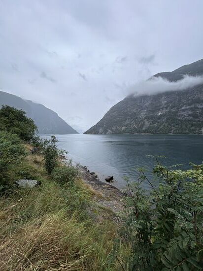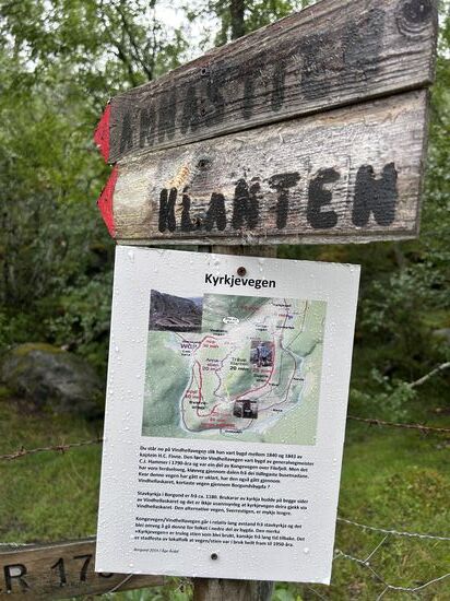Trotz Regen spazierten wir den Wanderweg zu Vindhellavegen, ein Teil des Königswegs.