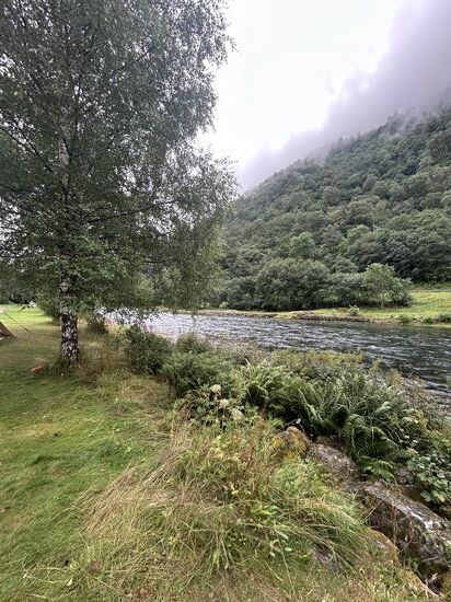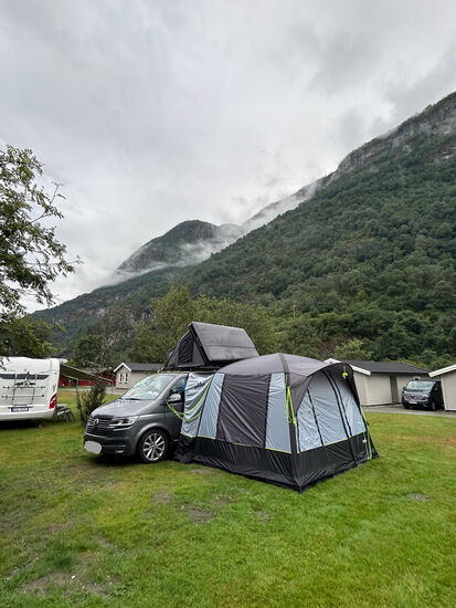 Auf dem Campingplatz Lunde Campinghaben wir einen tollen Platz gefunden. Da es aber leider immer noch regnet, haben wir das Zelt noch mit aufgebaut.