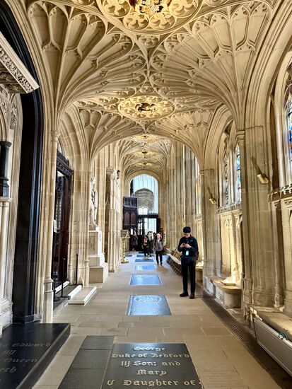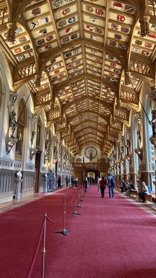 Hier im Hauptschiff der Kirche wurde die Trauerfeier von Königin Elisabeth und Prinz Philip abgehalten. Beide sind hier beerdigt. Die Grabstelle kann man besichtigen, aber Fotografieren ist unmöglich!