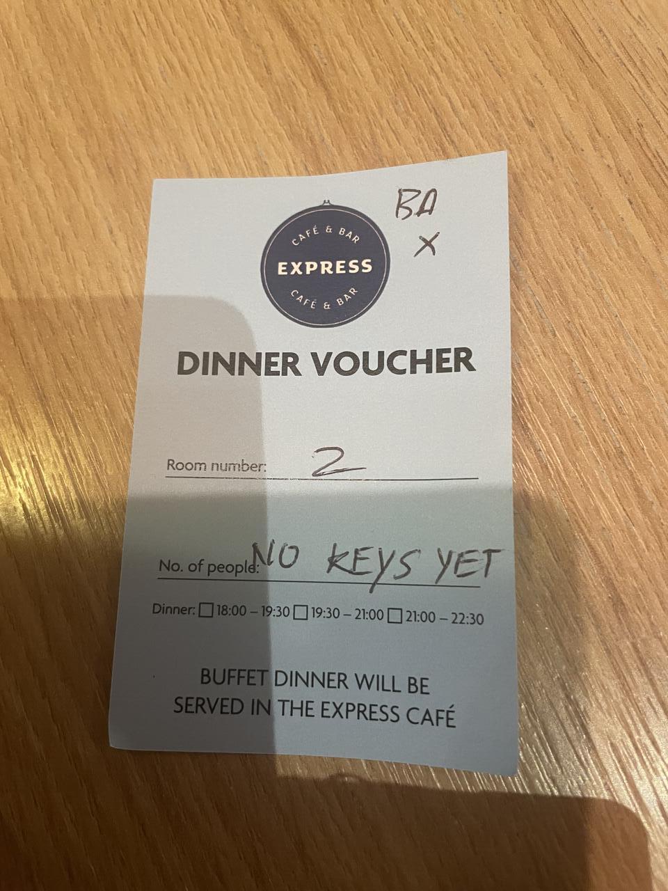 Man händigt uns einen Essensgutschein aus und wir verbringen die Zeit mit unseren neuen Bekannten an der Bar.