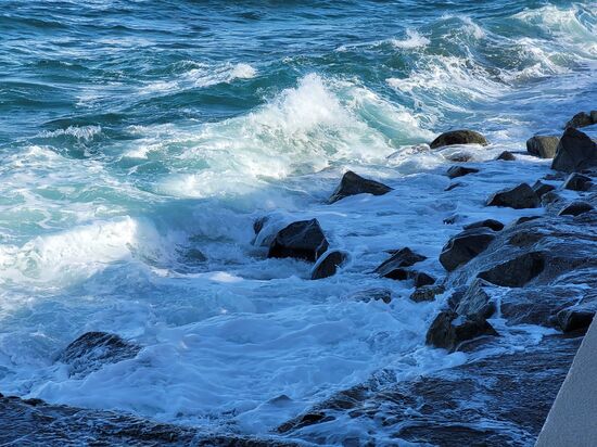 Heute morgen zeigte sich der Himmel von seiner schönsten blauen Seite, das Meer aber von seiner stürmischen. Relexen am Pool war angesagt.