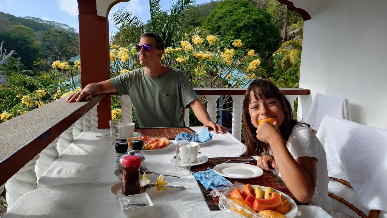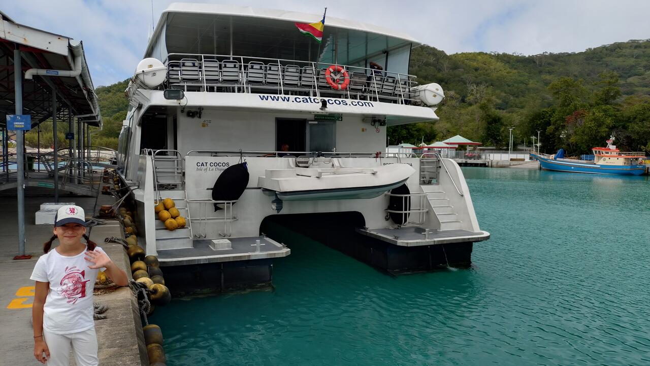 Nach 6 tollen Tagen auf Praslin ging es heute Mittag mit der Fähre auf die nicht weit entfernte kleinere Insel La Digue. Die Überfahrt dauert ca. 20 min. und wir hatten auch mehr Glück mit dem Wetter bzw. Wellengang. Wir haben den Ritt alle drei gut überstanden.