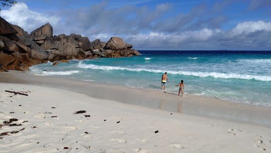 Mit diesem Blick begann ein spannender Tag im Nationalpark zum einst schönsten Strand der Welt: Anse Source D'Argent.