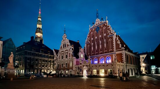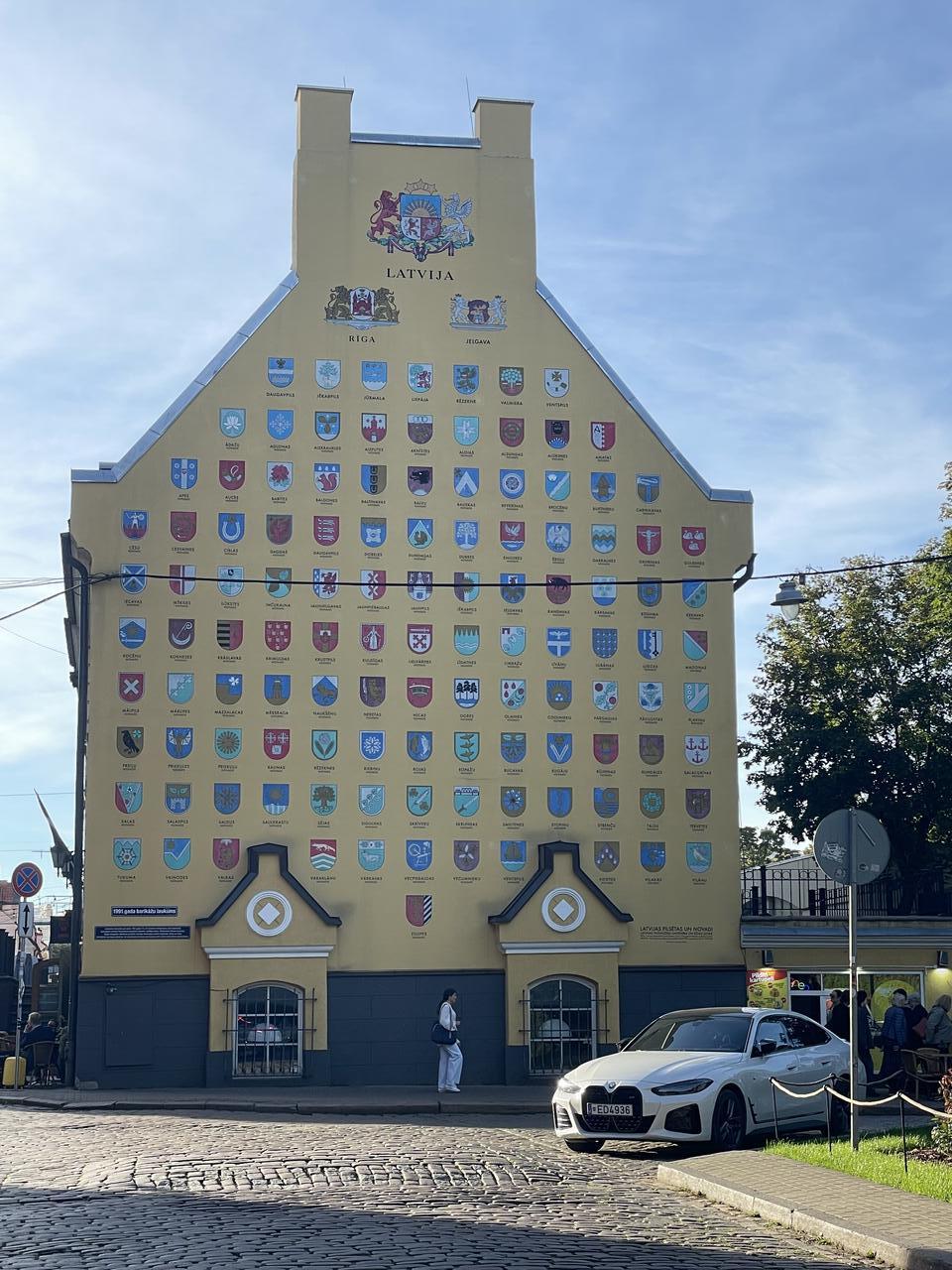 An der Fassade sind Wappen fast aller lettischen Städte und Gemeinden angebracht