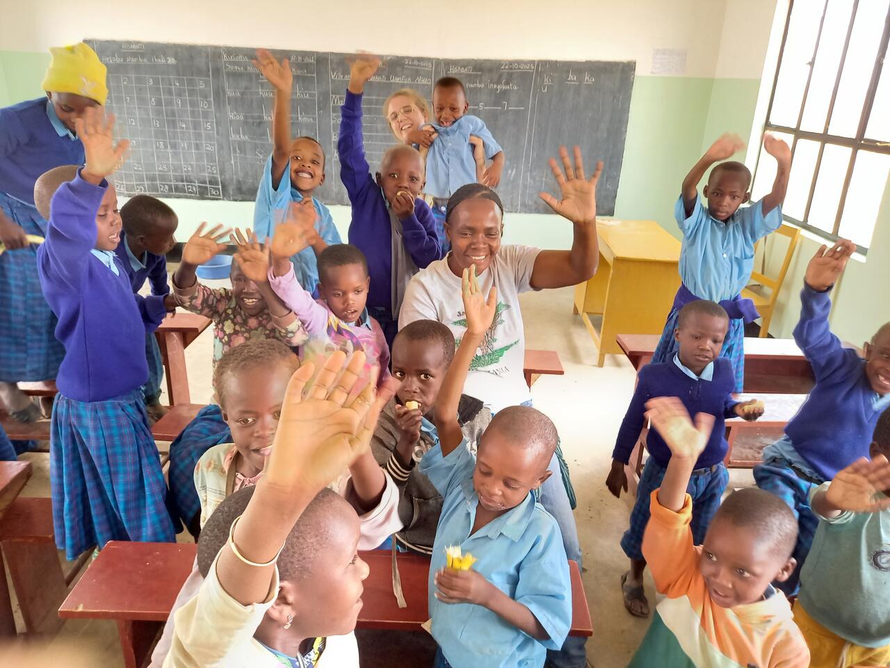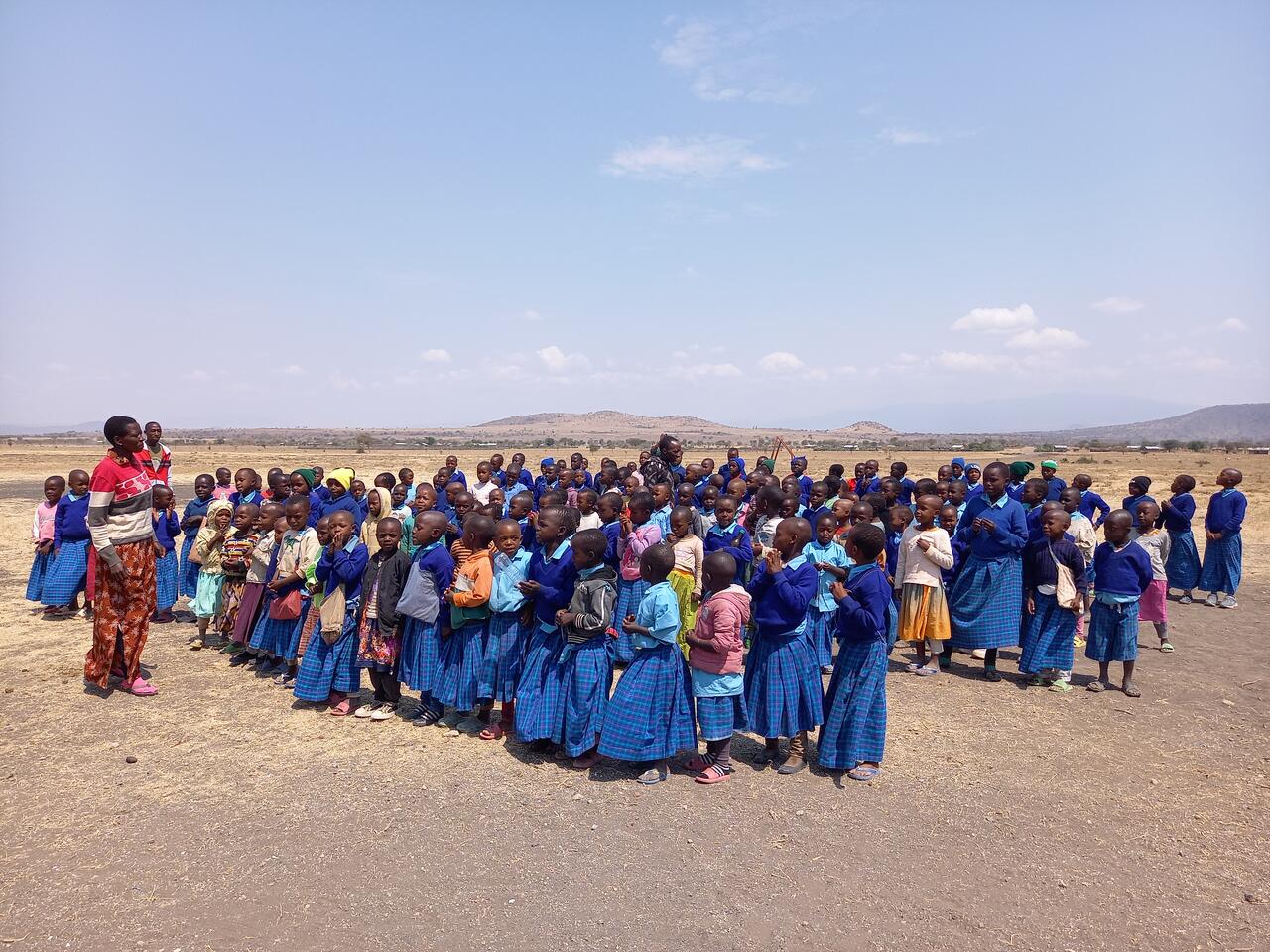 An der Schule werden wir von 146 Kinder mit Gesang in Empfang genommen. Unter den Liedern ist auch mein Lieblingslied der Massai. Zu Beginn dieses Projektes haben es die Massai Frauen bei jedem Besuch für mich gesungen