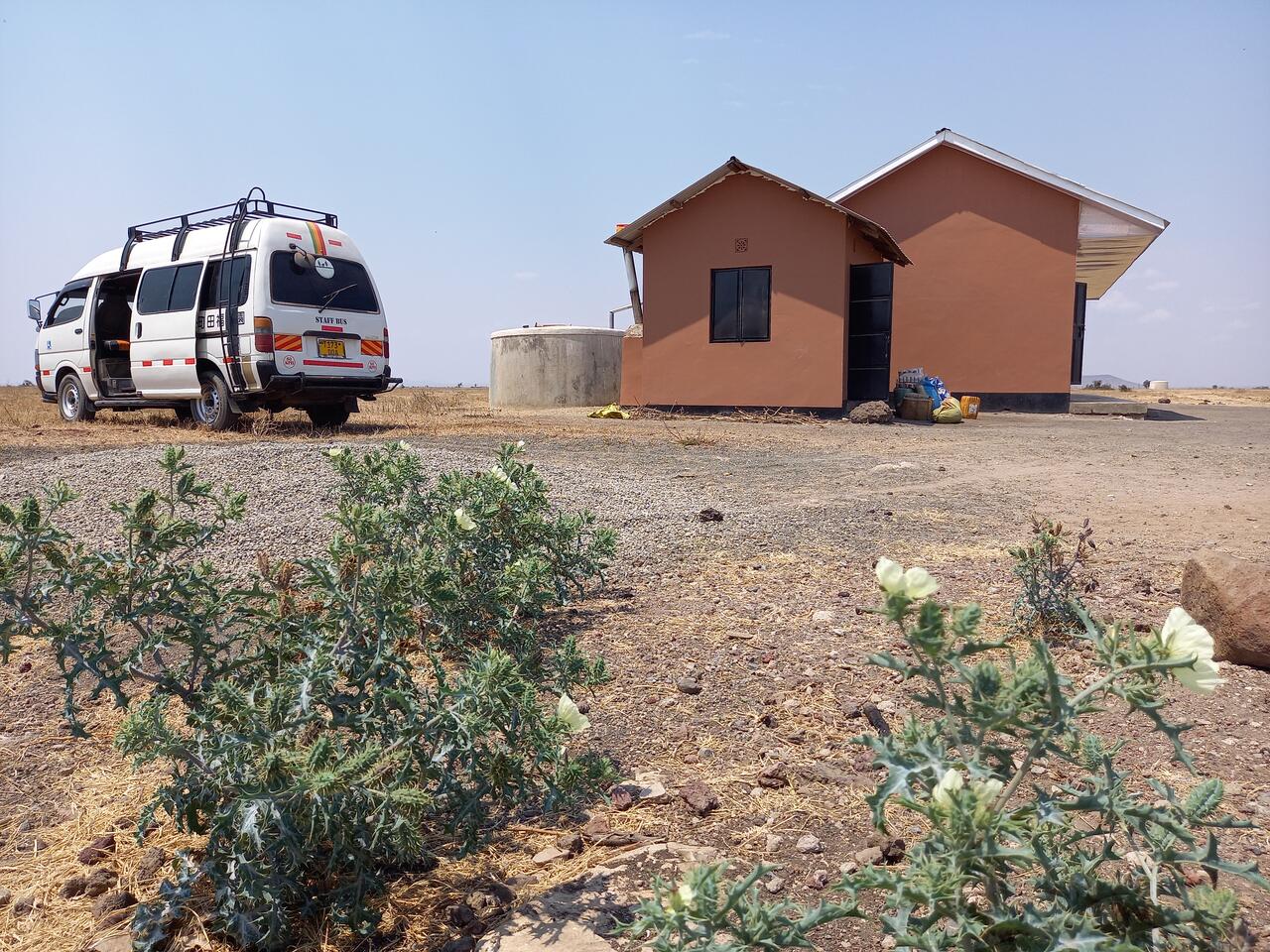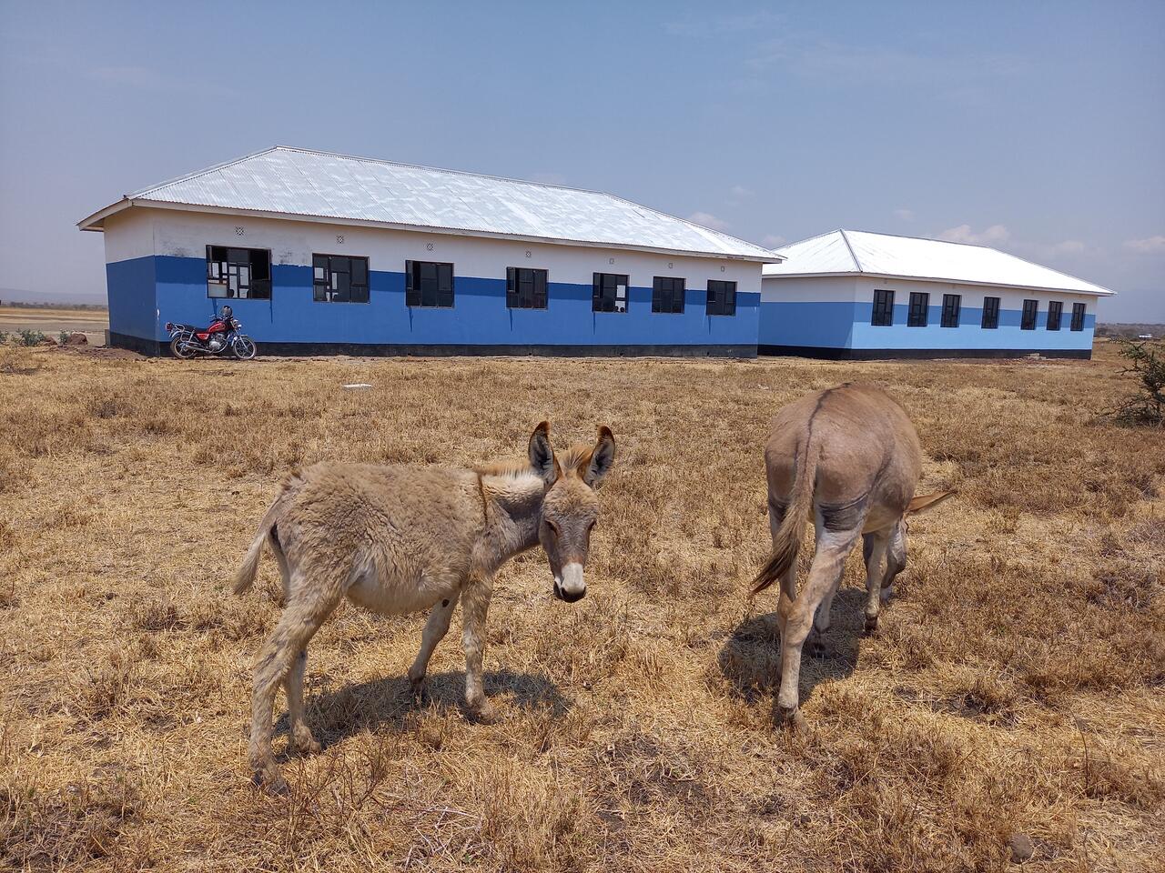 Eine gute Stunde werden wir auf holpriger Piste durchgeschüttelt. Wir spüren die Hitze und der Staub dringt durch jede Ritze zu uns ins Fahrzeug. Da ist es wichtig ausreichend Wasser dabei zu haben. Ich bin auf dieser Strecke in den letzten drei Jahren schon mehrfach unterwegs gewesen und nehme auch die Veränderungen wahr. So gibt es inzwischen immerhin eine Schotterstraße und über die Flüsse gibt es eine Überführung. Inzwischen sind auch einige Motorräder und Landwirtschaftliche Fahrzeuge hier zu sehen. Aber die meisten Massai sind noch immer zu Fuß unterwegs. Es tauchen erste Massai Dörfer auf. Noch leben die meisten in ihren runden Lehmhütten die von einer Dornenhecke umgeben sind. Doch ich bin mir sicher, das auch diese in der Zukunft einem Haus aus Stein weichen werden. Irgendwann sehe ich in der Ferne die Schulgebäude Es sind die ersten Gebäude in dieser Region die aus Steinen und Beton errichtet wurden.
