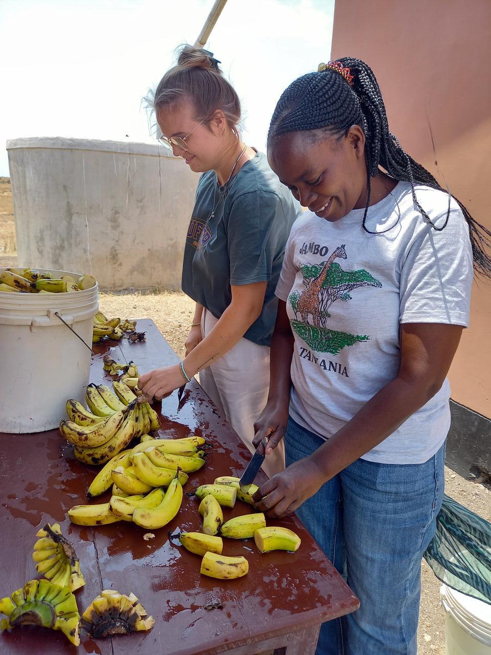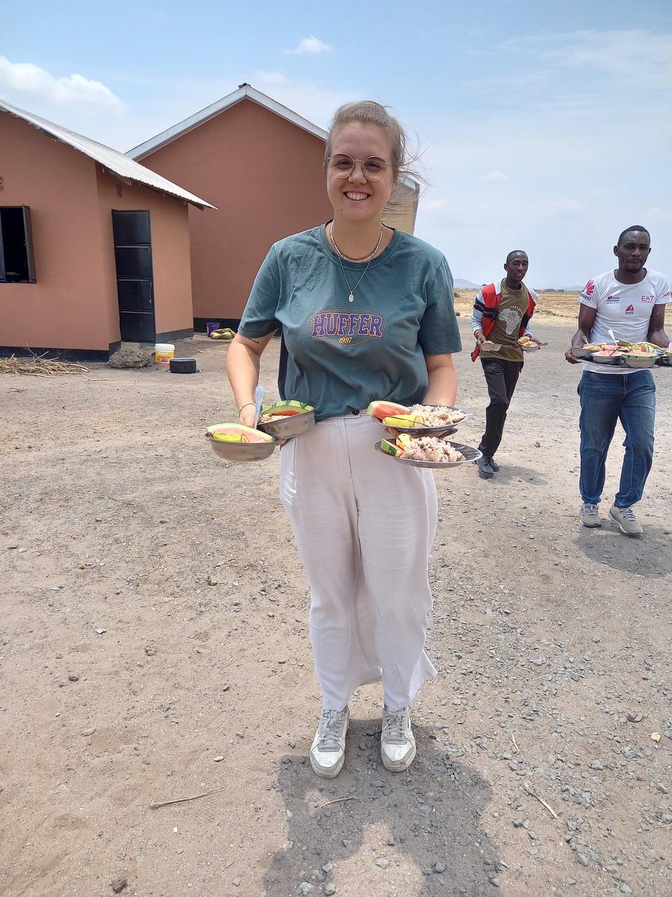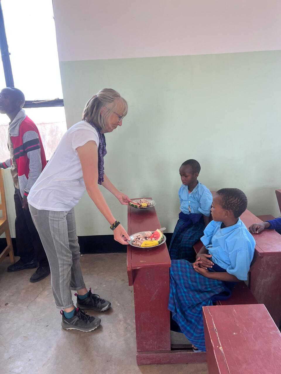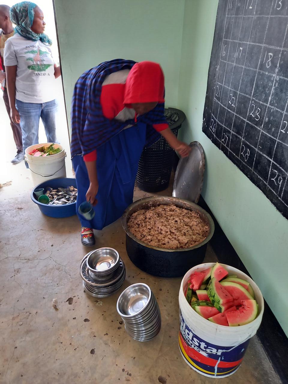 Wir haben Melonen und Bananen mitgebracht. Obst steht nur sehr selten auf dem Speiseplan. Immer nur dann, wenn Besucher wie wir welches mitbringen. Ansonsten gibt es Reis, Bohnen oder Porridge. Aber auch ohne Obst bedeutet es für die Kinder viel. Denn oft ist es für sie die einzige Mahlzeit am Tag.