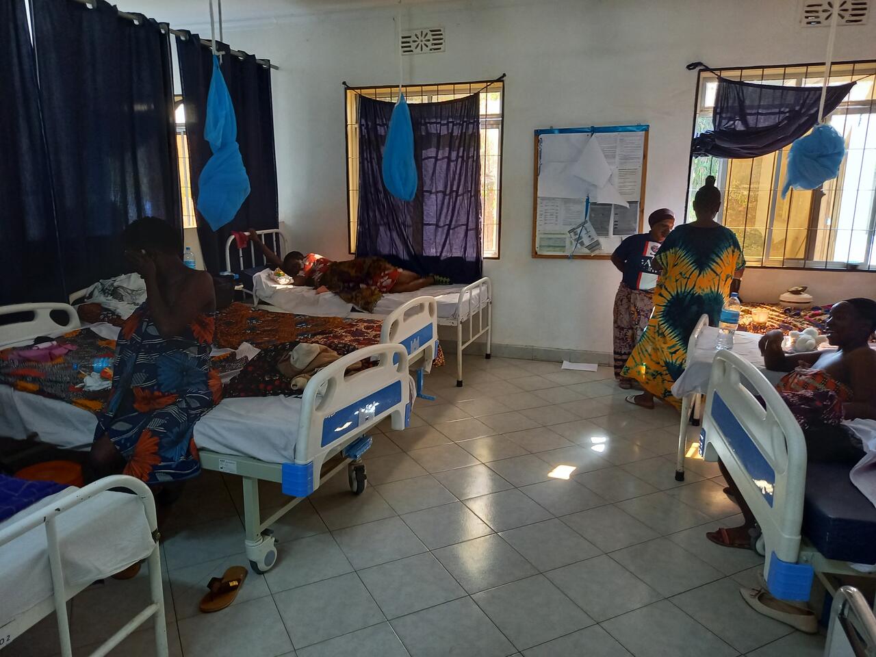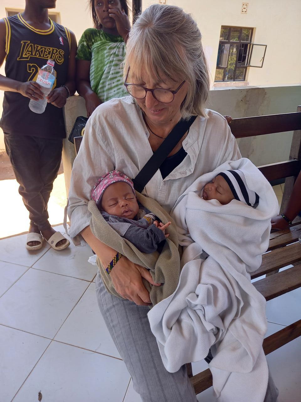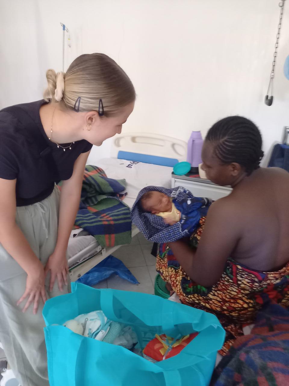Im Baby Haus füttere ich dann noch zwei Kleine, sortiere Wäsche und dann geht es ein zweites Mal ins Krankenhaus. Tatsächlich hat Dr. Hillary direkt Zeit für uns und ich kann ihm meine Spenden aus der Heimat übergeben. Wie bei jedem meiner Besuche freut er sich sehr. Wir machen noch ein gemeinsames Foto und dann gehen wir durch die Geburtenstation und verteilen unsere kleinen Geschenke. In der Station gibt es keinerlei Privatsphäre. Viele Betten stehen zusammen in einem Raum und manchmal müssen sich auch zwei Frauen ein Bett teilen. Das Bettzeug müssen die Frauen mitbringen. Die Verpflegung stellen Verwandte sicher. Kein Vergleich zu dem Standard in unserer Heimat! In einem Nebenraum sitz eine Mutter die erst entbunden hat. Sie bekam Zwillinge. Ein Kind hat sie verloren. Nun sitzt sie geschwächt auf einem Hocker, ihr Baby im Arm. Es bekommt gerade Sauerstoff und liegt ansonsten im Wärmebettchen. In dem Krankenhaus fehlt es an vielem und daran hat sich seit 2022 nichts oder nur wenig verändert. Noch immer sterben viele Mütter und Säuglinge bei der Geburt. Einige dieser Baby`s kommen dann in unser Baby Haus. Obwohl ich schon mehrere Male in diesem Krankenhaus gewesen bin, machen mich die Zustände jedes Mal wieder sehr betroffen. Es ist erschreckend, wie sehr das Überleben eines Baby`s davon abhängt, in welchem Teil dieser Erde es geboren wird.