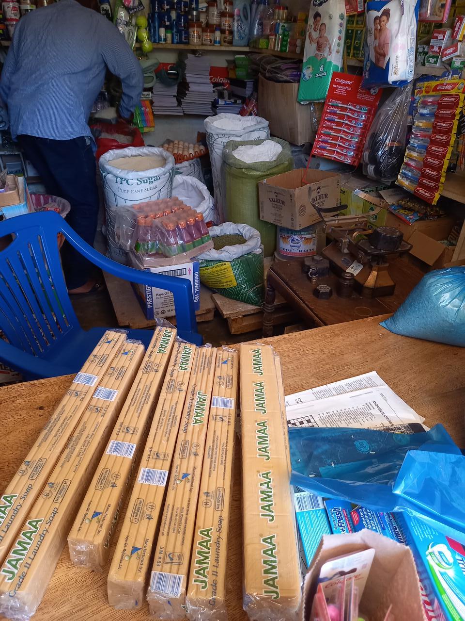 Ehe wir uns mit den Kindern und ihren Familienangehörigen treffen, kaufe ich noch eine Kleinigkeit für jede Familie ein. Zahnbürsten- und Pasta, Seife und Reis.